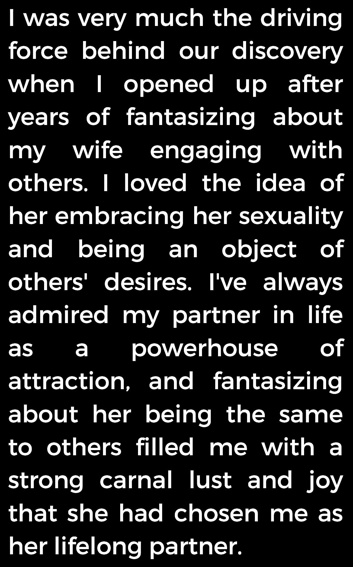 I currently identify as heteroflexible. I've I currently identify as heteroflexible. I've had experience with same sex play, and had experience with same sex and had and it's something that I never imagined it's something that I never imagined never would be a possibility, but my experiences would be a possibility, but my experiences be have all been enjoyable. I still very much have all been enjoyable. still very much have enjoyable. much prefer opposite sex play, but I've found my prefer opposite sex play, but found my but found desires ebb and flow depending on my desires ebb and flow depending on my desires and flow mood. I look forward to exploring this side mood. I look forward to exploring this side to side of myself further as we continue to grow. of myself further as we continue to grow. myself we continue My wife has fully opened up to her My wife has fully opened up to her wife fully opened bisexuality throughout our journey, and bisexuality throughout our journey, and throughout and we've both been very supportive of each we've both been very supportive of each supportive each other's discovery as we've progressed. other's discovery as we've progressed. discovery as