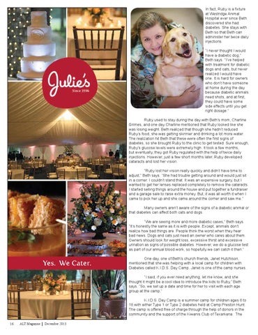 “I never thought I would have a diabetic dog,” Beth says. “I’ve helped with treatment for diabetic dogs and cats, but never realized I would have one. It is hard for owners who don’t have someone at home during the day because diabetic animals need shots, and at first, they could have some side effects until you get right dosage.”