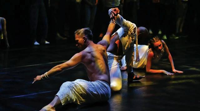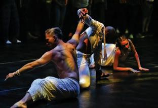 to the ground, before snapping into jagged shapes, and weaving between audience members and across three stages with playful intent.
