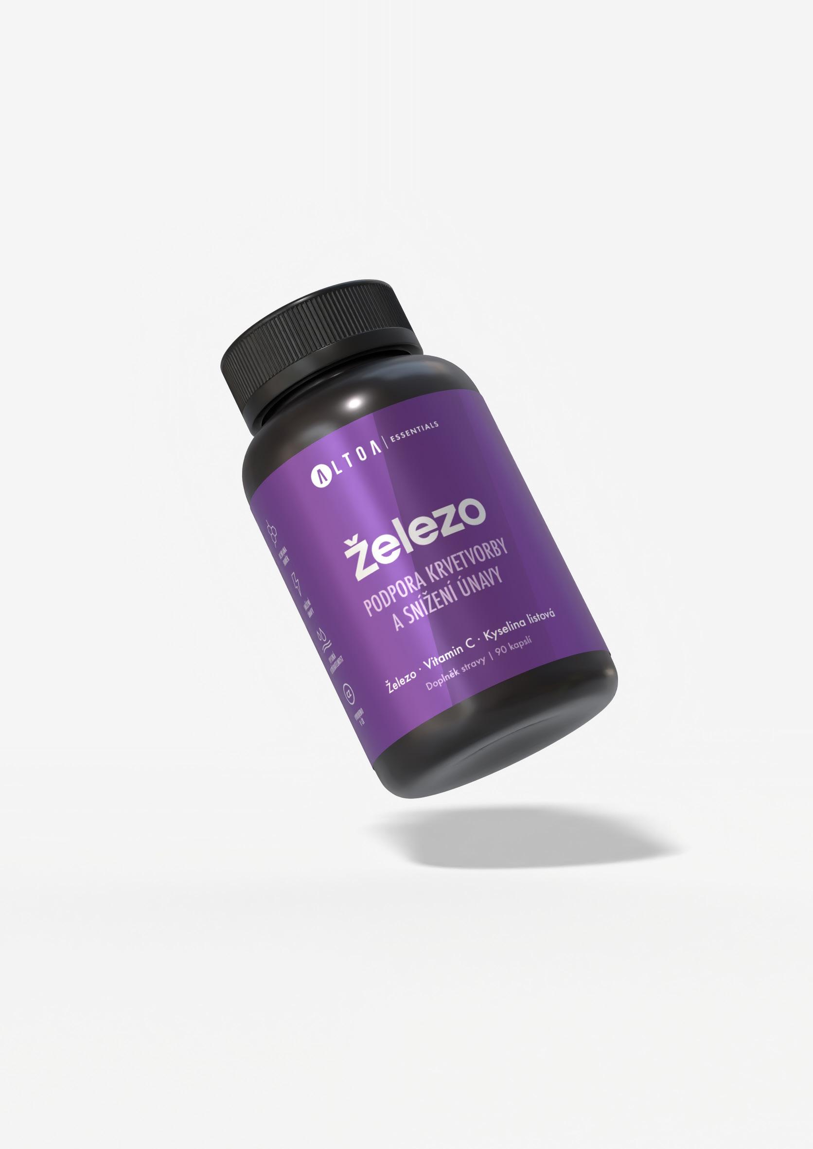 Složení: Vitamin C (askorbát vápenatý), železo (bisglycinát železnatý), vitamin B9 (kyselina listová), vegetariánská kapsle.