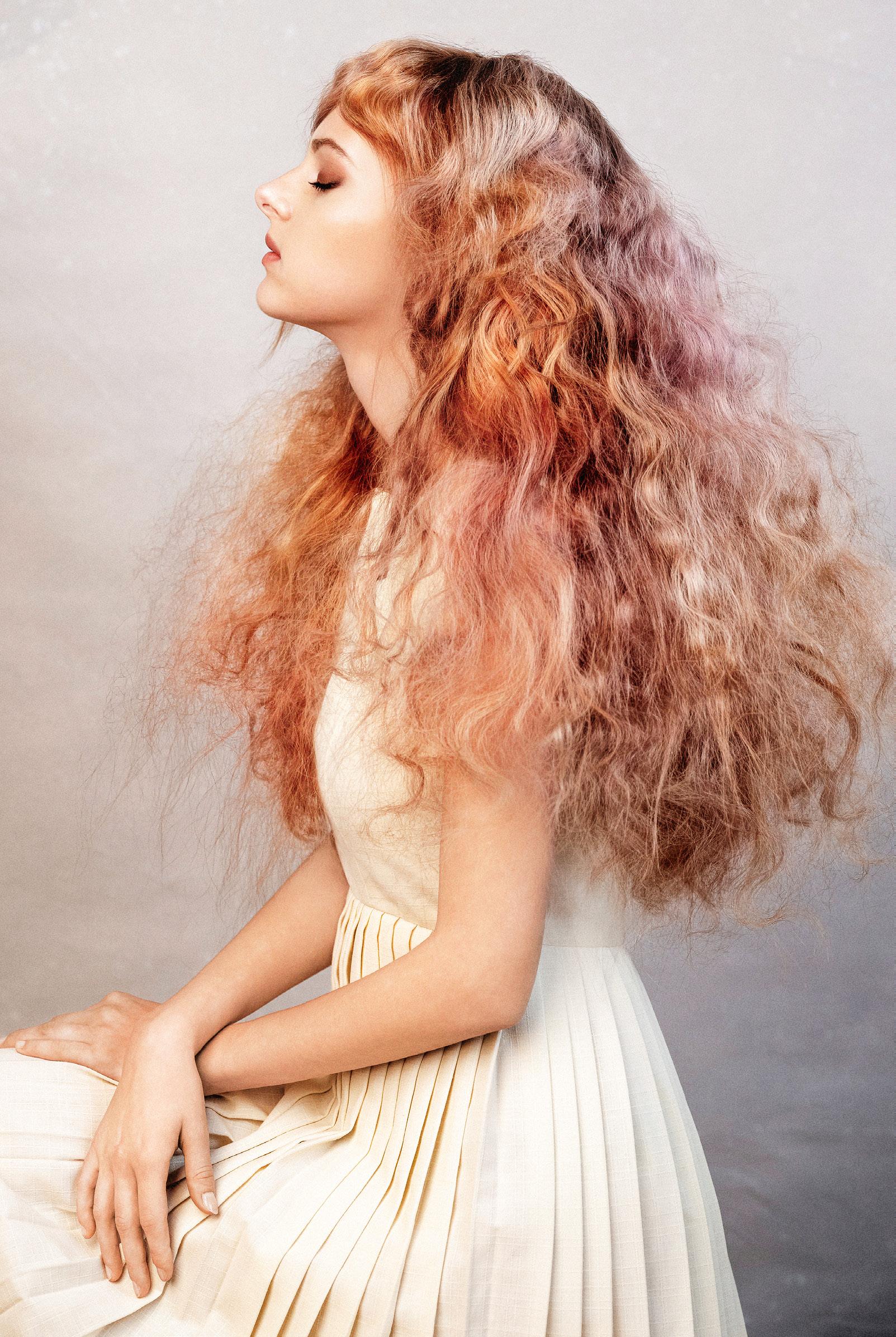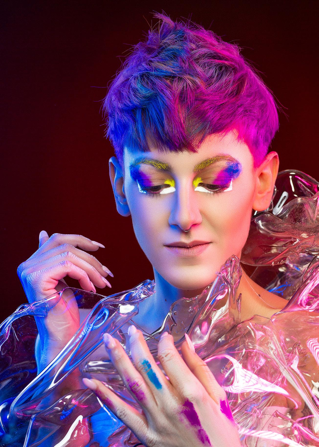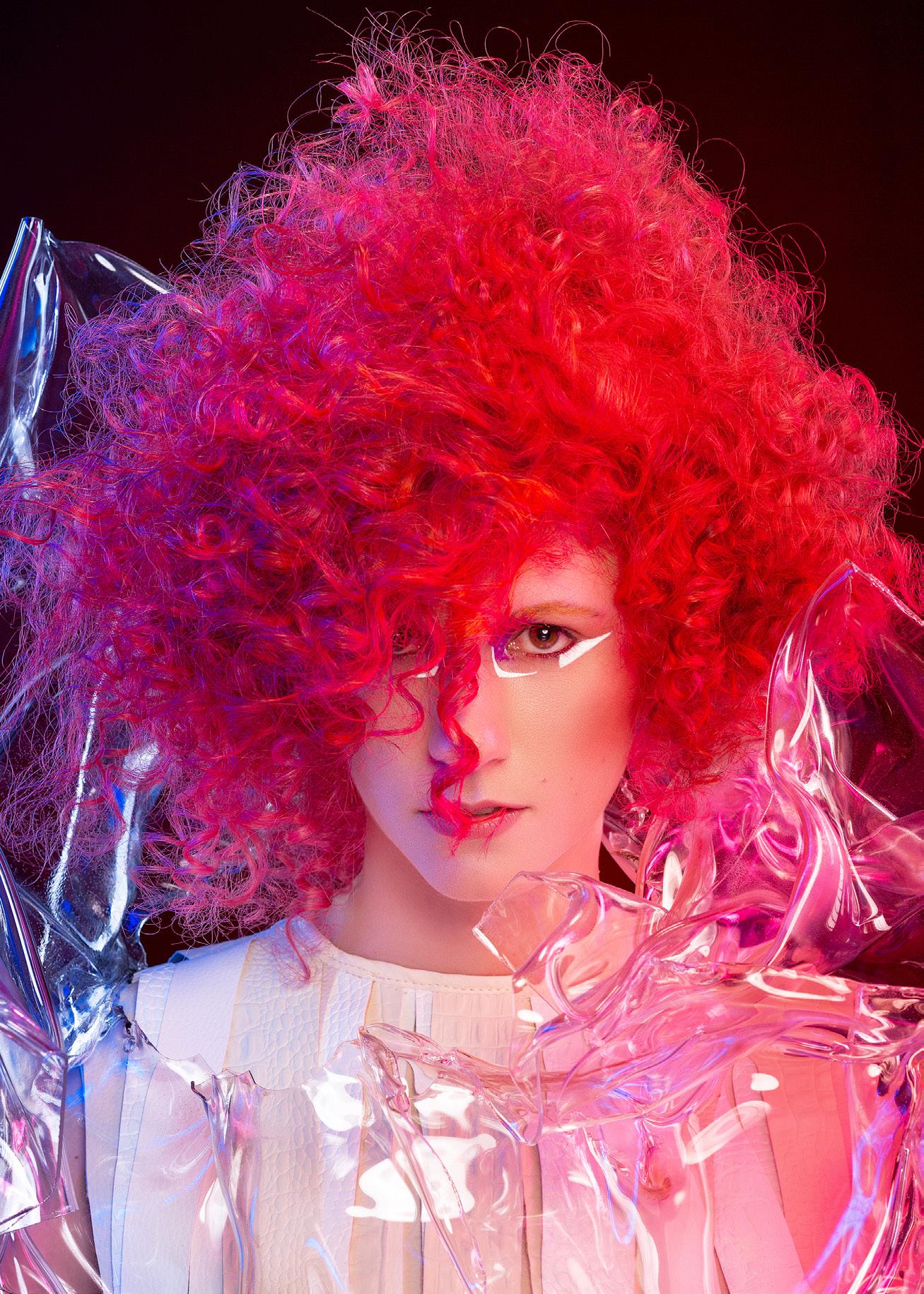Mi inspiración fueron los hermosos y extraordinarios elementos de la luz misma y la luz que se refleja en la textura. Desde el espectro de luz y los patrones hasta el pelaje, las plumas y los líquidos, jugué con ideas de la naturaleza para crear cada nuevo peinado.