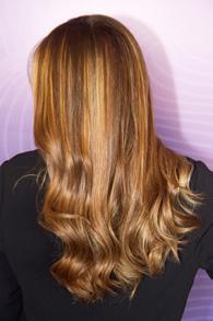 La colorista Rachel Vitullo creó tonos que reflejan la esencia del lago: rubios brillantes y melocotones suaves, utilizando el Color Líquido DemiPermanente de