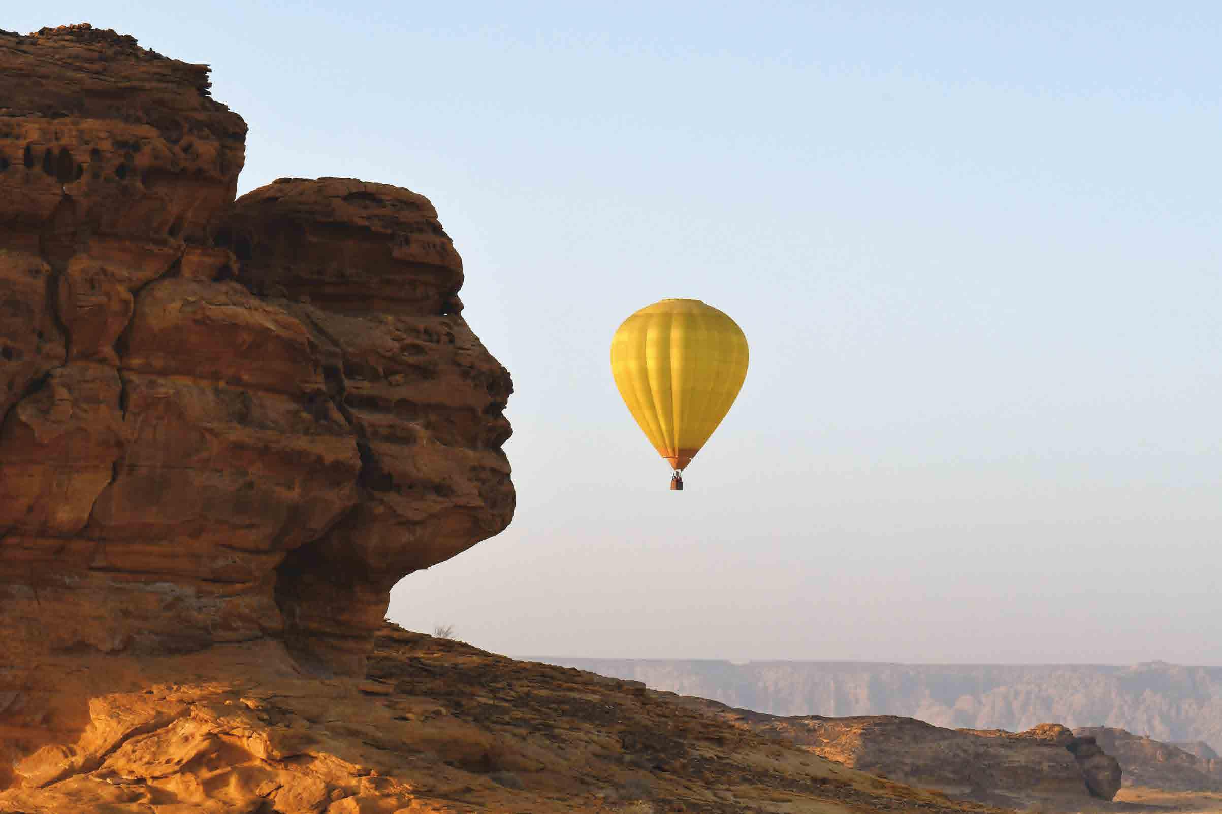There are so many ways to enjoy the extraordinary environment of AlUla. It is hard to beat the experience from the skies, floating above the magnificent landscape in a hot air balloon(1) or flying in a vintage Beech 18 airplane. For a closer look, tour the site by foot, bicycle, camel or 4x4. During the Winter at Tantora festival, equestrian aficionados might