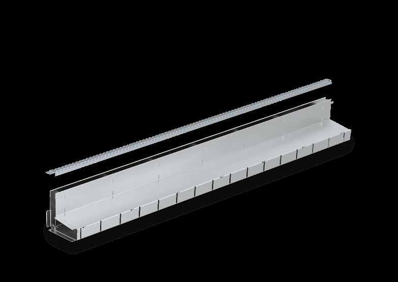 The channels are made of galvanised steel or stainless steel. Strengthening bars ensure a stable form during installation, preventing the channel walls from being pressed together or apart.