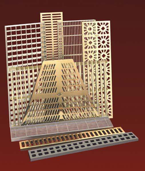 Whilst of pleasing appearance, gratings are designed to be relatively inconspicuous when installed. For areas where a better class of finish is required, some products are available in nickel bronze made to order.