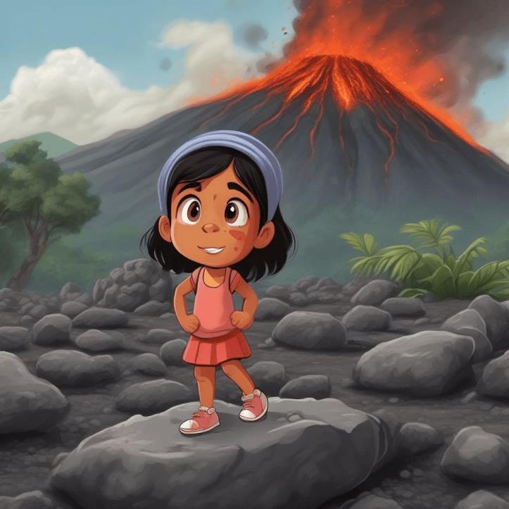 Había una vez una niña muy valiente llamada Aidé, que vivía cerca de un volcán.