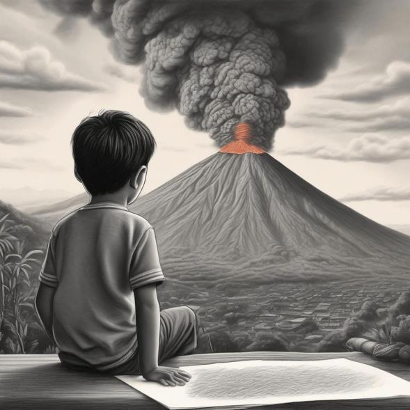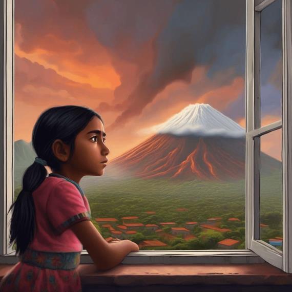 "Había una vez, en las tierras altas de Guatemala, un pequeño pueblo llamado El Palmar, vivía en la sombra del volcán Santiaguito· Los niños del pueblo habían crecido escuchando las historias de la actividaddelvolcán,peronuncahabíanvisto unaerupciónenpersona·