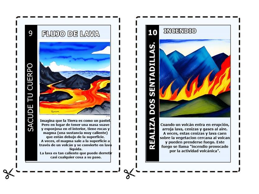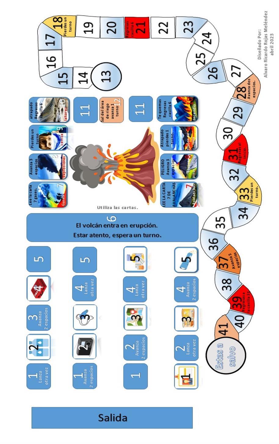 Cada jugador debe lanzar un dado y avanzar su ficha en consecuencia. En el camino, los jugadoresencontrarándiferentesdesafíosrelacionadosconlaactividadvolcánica,comoríosde lava,humotóxicoyfuentestermales.Losjugadorestambiénencontraránelementosútilescomo mochilas,linternasymapasquelosayudaránaavanzar.