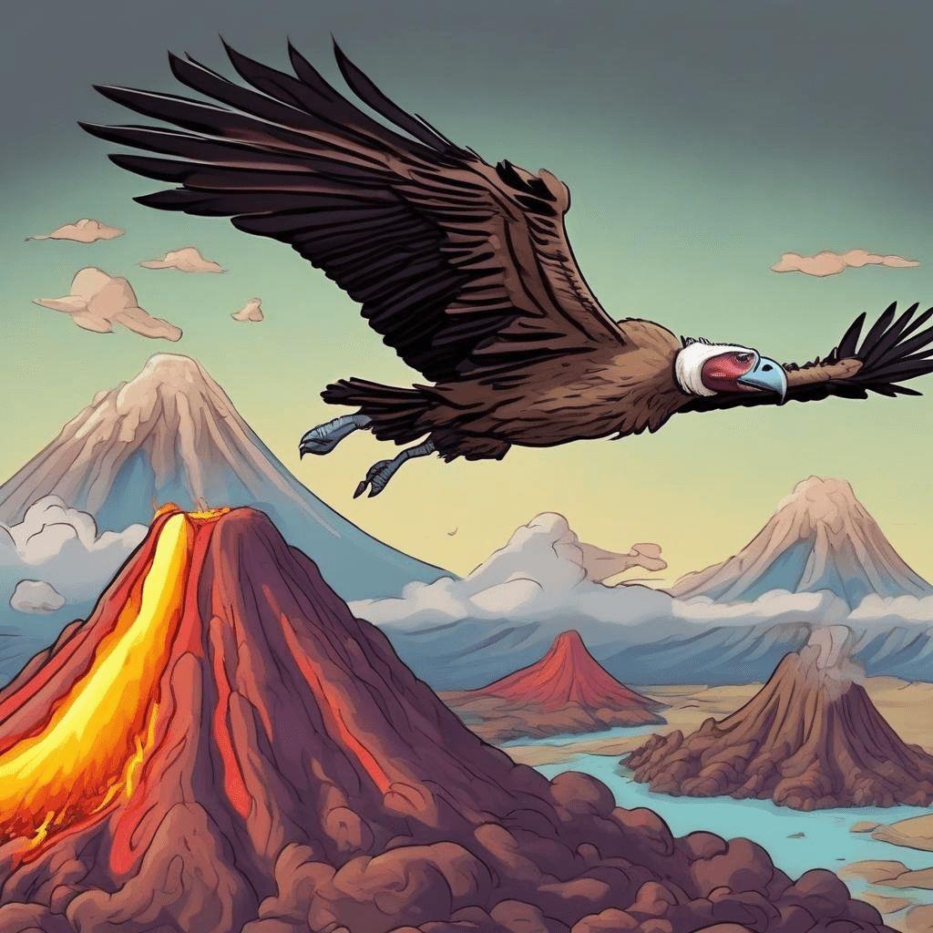 Un día, mientras el volcán estaba haciendo un berrinche, un zopilote curioso se acercó al borde del cráter para espiar. Pero, ¡ups!, perdió el equilibrioycayóadentrodelvolcán.Lagentequeestabamirandonopodíacreerloqueveían.