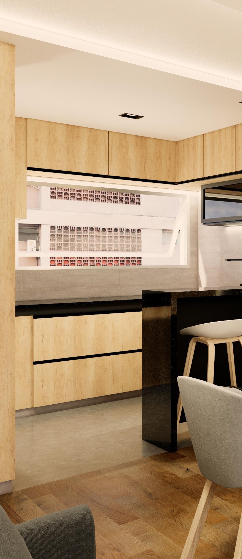 Mi labor consistió en materializar la propuesta para compartir el proyecto con el cliente en una presentación, mediante la elaboración 3D de la propuesta, renderizado de imágenes y la realización de una planta fotorrealista del departamento.