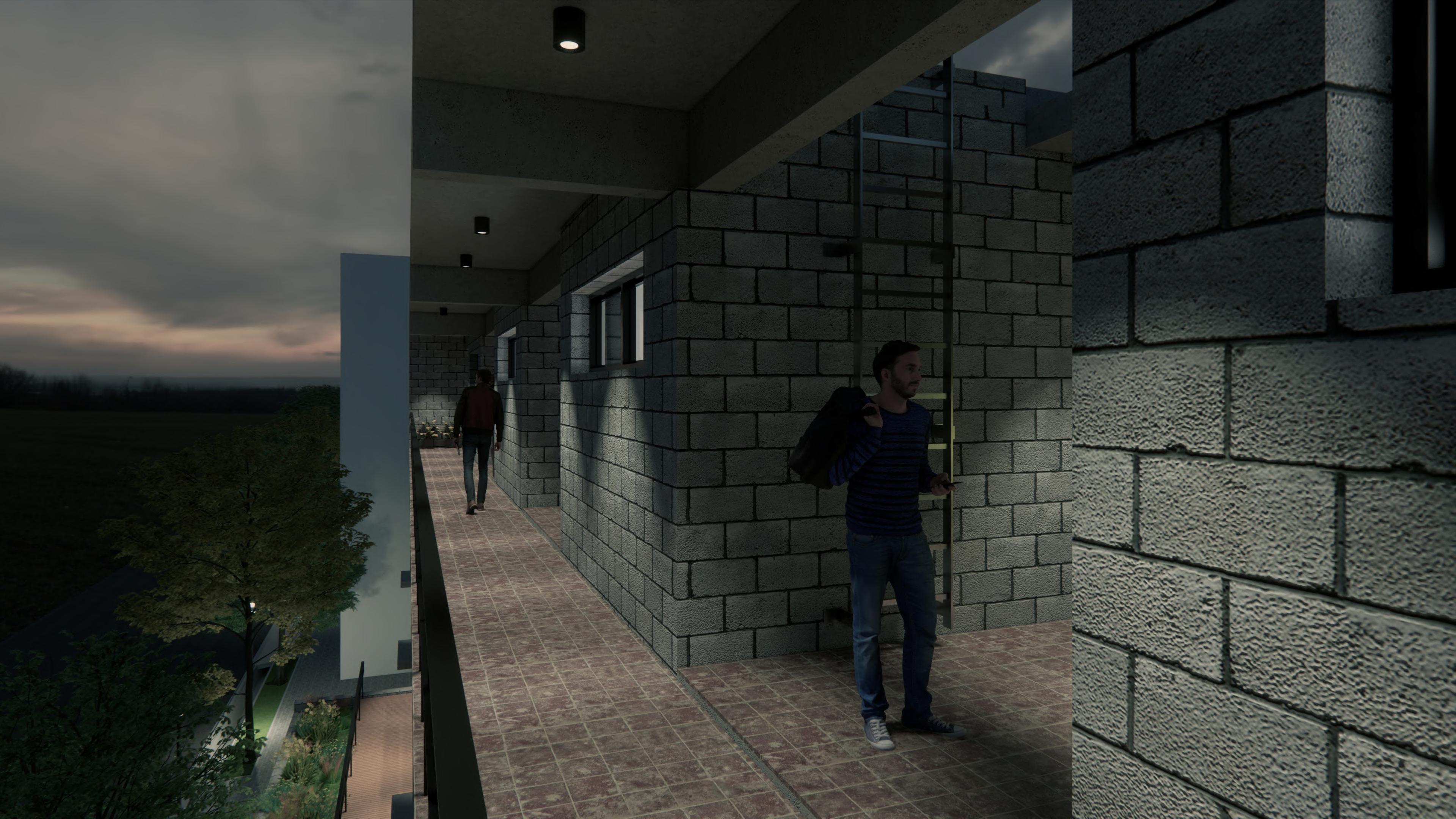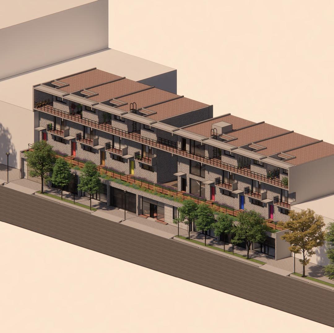 A pesar de los beneficios que traen para la ciudad los modelos de vivienda compactos, aparecen barreras que obstaculizan la relación entre los residentes de estos complejos de vivienda y los vecinos de la calle donde viven. Buscando quitar estas barreras que las unidades habitacionales crean se apuesta a mejorar la comunicación entre vecinos. Para crear posibilidades de vínculo visual y posiblemente de relación, se orientan las circulaciones del edificio hacia la calle. Además, para replicar la convivencia de un barrio público de viviendas unifamiliares, los ingresos de las viviendas dan hacia la calle para reconocer a sus vecinos y poder identificarlos con un lugar en específico.