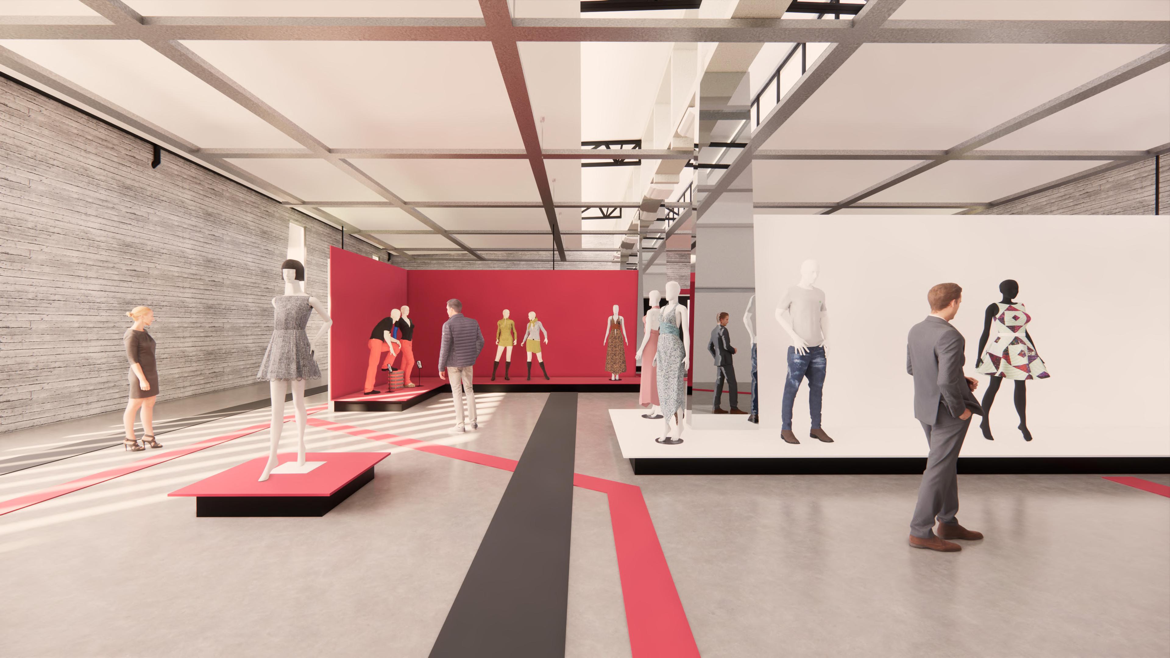 Una vez hechas las plazas y proyectadas las naves junto con el hall articulador, lo que restaba es darle vida al interior. Entonces para esto se asignó una exposición temática que esté orientada a la moda y todo relacionado con el diseño de vestimenta. El programa completo se distribuye entre las 3 naves asignandole a cada una un rol determinado a cumplir.