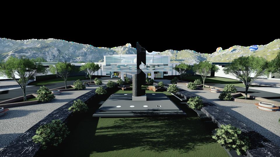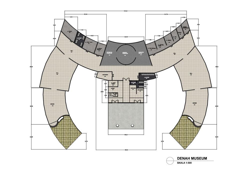 Ditambahkan bentukan massa di sisi kanan dan kiri yang menandakan sebuah “perdamaian”