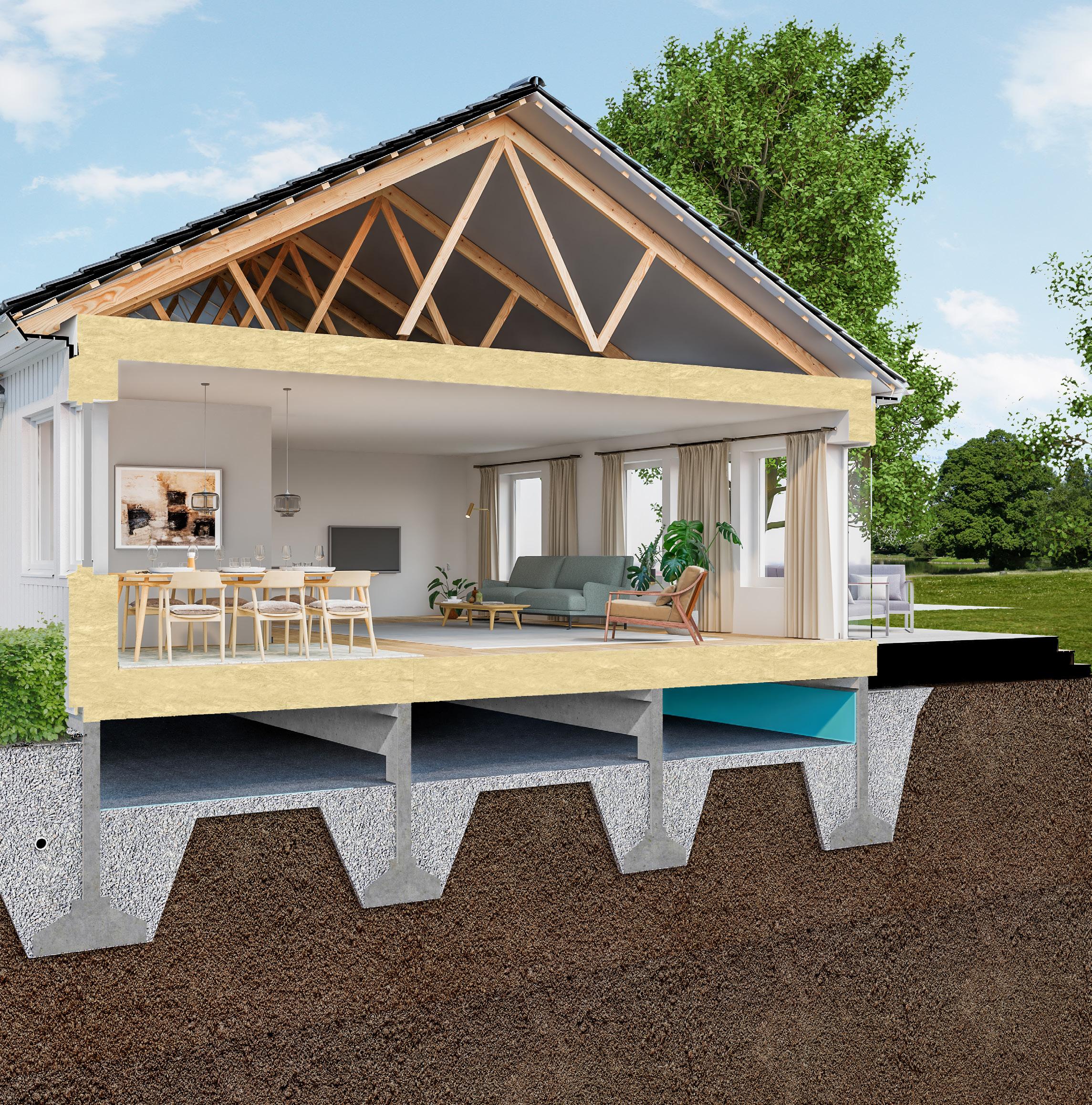 tillverkad inomhus, specialgjord för förutsättningarna du har på din tomt. När grunden är lagd är nästa steg att dra in el, vatten och avlopp samt utföra kompletterande markarbeten. Du kan antingen ansvara för detta själv, eller i de flesta av våra områden välja att beställa dessa arbeten direkt av Älvsbyhus eller av Älvsbyhus grundmontör.