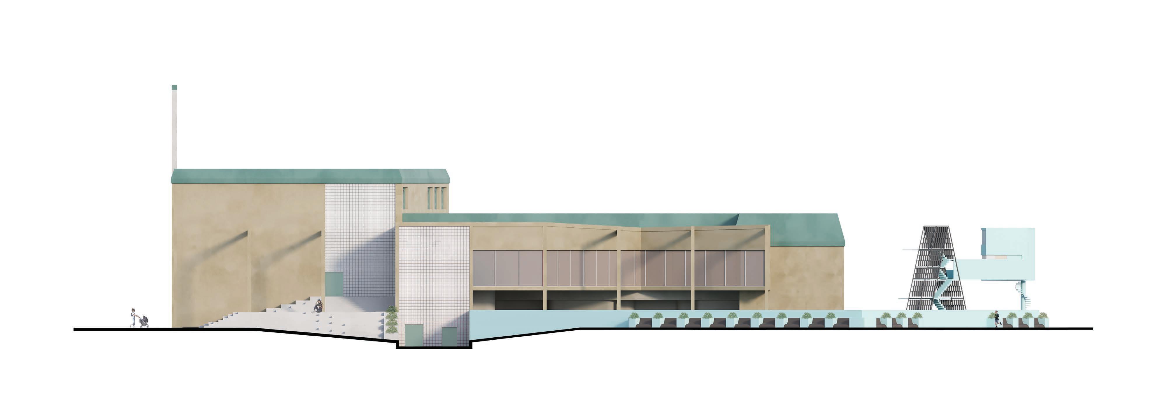 The combination of these two elements, ruin and structure gives us a space that is somewhere inbetween building and not. The unregular brick walls stand tall, clothed in a brace of steel. The space inside can either be roofed, or open to the sky. Decorated and filled, or left empty. This is a space that is meant to change as needed in terms of present, but also future use.