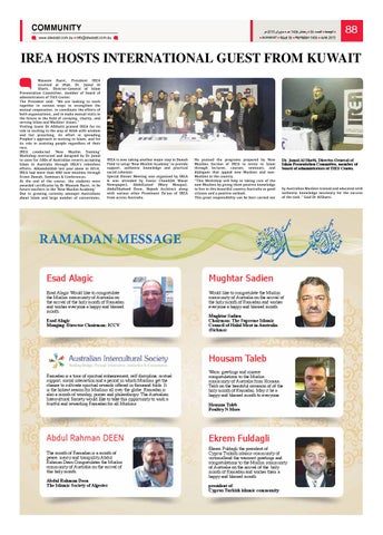 Esad Alagic Would like to congratulate the Muslim community of Australia on the arrival of the holy month of Ramadan and wishes everyone a happy and blessed month.