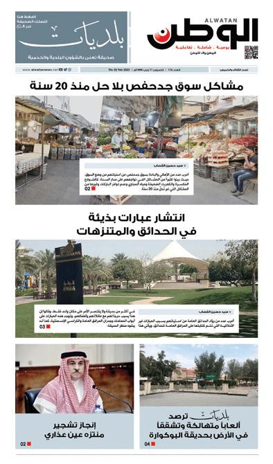 www. alwatannews .net سيمخلاو ءاثلاثلا ردصت ةــيلعافت ةــلماش ةــيموي نطولل ءلاو نطولا انه طغضا ةفيحصلا كلصتل ـلا ربع ةيمدخلاو ةيدلبلا نوؤشلاب ىنعت ةفيحص دصرت اًققشتو ةكلاهتم اًباعلأ ةراوكوبلا ةقيدحب ضرلأا يف ريجشت زاجنإ يراذع نيع هزتنم 04 02 » باصقلا نيسح ديس ،قوسلا عضو نم مهئايتسا نع صفحدج قوسب ةعابلاو يلاهلأا نم ددع برعأ عراو��شلاك ،ةن��سلا رادم ىلع مههجاوت ي��تلا لكا��شملا نم ً اريثك اونيب ث��يح نم اهريغو تاكرابلا رفاوت مدعو يراجملا هايمو ةفيعضلا ءابرهكلاو ةر��سكملا .ةنس 20 ذنم ْ ّ لح ُ ت مل يتلا لكاشملا 02 Thu 02 Feb 2023 | ـه1444 بجر 11 سيمخلا 116 ددعلا ةنس 20 ذنم لح لاب صفحدج قوس لكاشم ةئيذب تارابع راشتنا تاهزنتملاو قئادحلا يف » باصقلا نيسح ديس ريغ تارابعلا بب��سب مهئايت��سا نع ةماعلا قئادحلا دا ّ ور نم ددع برعأ اذه يتأيو ،قئادحلل ة��ماعلا قفارملا ىلع اهتباتك م��تت يتلا ة��يقلاخلأا نإ اولاقو .ط��قف دحاو ناكم ىلع رملأا ر��صتقي لاو ةقيدح نم ر��ثكأ ي��ف ىلع تارابعلا هذه دجوتو ،مهلافطأو مهتلائاع عم مهل ً اجرح ببسي اذه هنأ امك ،ةيتنم��سلإا ي��ساركلاو ةماعلا قفارملا ناردجو تامامحلا باوبأ .ةقيدحلا رظنم هوشي 03