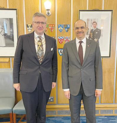 06 local@alwatannews.net نطولا رابخأ Wed 05 Jul 2023 ـه1444 ة جحلا وذ 17 ءا عبرلأا 6416 دد علا 18 ةن سلا ةلصاوم :ةينوناقلا نوؤشلا ريزو ةدحتملا ةكلمملا عم تاقلاعلا زيزعت دمح نب ناملس ريملأا يكلملا ومسلا بحاص اهب موقي يتلا ةيم��سرلا ةرايزلا راطإ يف ريزو ىقتلا ،ةقيدصلا ةدحتملا ةكلمملا ىلإ ءارزولا سلجم سيئر دهعلا يلو ةفيلخ لآ ةنجل سيئر لين بوب يناطيربلا مومعلا سلجم وضع ،فلخ فسوي ةينوناقلا نوؤ��شلا فيرش جنيك رتسلاو ،ايناطيربل ةماعلا ةيعدملا سيتنرب ايروتكيفو ،سلجملاب ةلادعلا .ندنل ةنيدم ةكلمملاو نيرحبلا ةكلمم عمجت يتلا ةديطولا تاقلاعلاب ةينوناقلا نوؤشلا ريزو داشأو ةيخيراتلا تاقلاعلل ً ادانت��سا اهزيزعت ةلصاوم ىلع مئادلا ةكلمملا صرحو ،ةدحتملا