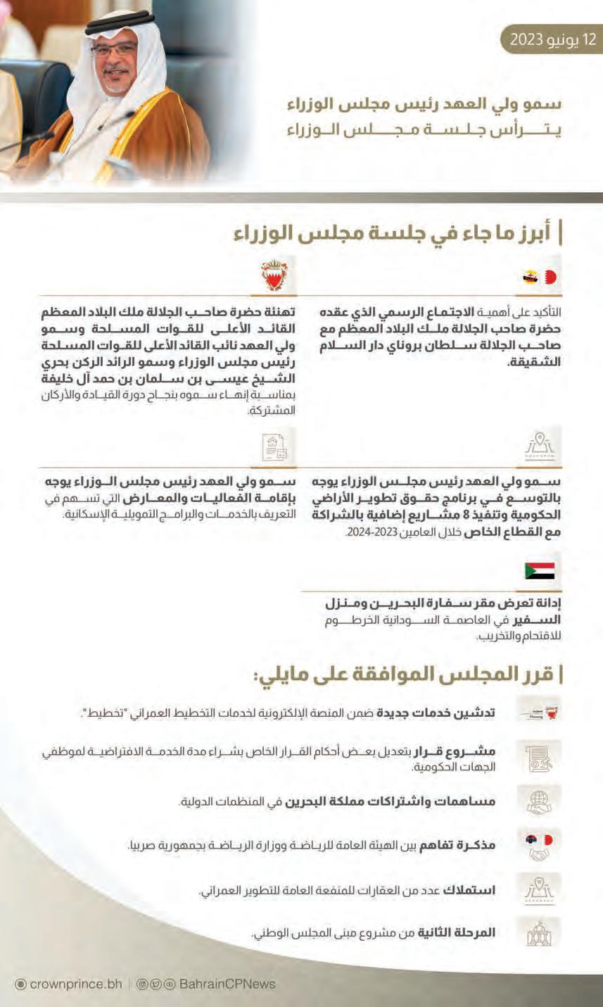 02 local@alwatannews.net نطولا رابخأ Tue 13 Jun 2023 | ـه1444 ةدعقلا وذ 24 ءاثلاثلا 6394 ددعلا 18 ةن سلا 2024و 2023 للاخ صاخلا عاطقلا عم ةكارشلاب ةيفاضإ عيراشم 8 ذيفنت هجوي ءارزولا سيئر دهعلا يلو ةيموكحلا يضارلأا ريوطت قوقح جمانرب يف عسوتلاب دمح نب نامل��س ريملأا يكلملا وم��سلا بحاص هجو ةرازو ،ءارزو��لا سلجم س��يئر دهعلا ي��لو ة��فيلخ لآ جمانرب يف ع��سوتلاب ينارمعلا طيطختلاو ناك��سلإا عيرا��شم 8 ذيفنتو ةيموكحلا يضارلأا ر��يوطت قوقح نيماعلا للاخ صاخلا عا��طقلا عم ةكار��شلاب ةيفاضإ 2024-2023 سلجمل يعوبسلأا يدايتعلاا عامتجلاا للاخ كلذ ءاج وم��سلا بحاص ة��سائرب ،س��مأ دقع يذ��لا ءارزو��لا دهعلا يلو ةفيلخ لآ دمح نب نامل��س ريملأا يكلملا ،سلجملا ضرعت��سا ث��يح ،ءارزو��لا سلجم س��يئر قوقح جمانربل ةيبيرجتلا ةلحرملا مييقت تادجت��سم هفادهأ ىودج تزربأ يتلاو ،ةيموكحلا يضارلأا ريوطت نيديفتسملا مئلات راعسأب تادحو ريفوت ىلإ ةيمارلا .ةثدحتسملا ةيليومتلا جماربلا نم سيئر دهعلا ي��لو يكلملا وم��سلا بحاص هجو ا��مك ينارمعلا طيطختلاو ناك��سلإا ةرازو ءارزو��لا سلجم ي��ف مه��ست ي��تلا ضرا��عملاو تا��يلاعفلا ة��ماقإب .ةيناكسلإا ةيليومتلا جماربلاو تامدخلاب فيرعتلا ةيمهأ ى��لع سلجملا د��كأ ،عا��متجلاا ة��يادب ي��فو ةللاجلا بحاص ةرضح هدقع يذلا يم��سرلا عامتجلاا ،مظعملا دلابلا كلم ةفيلخ لآ ىسيع نب دمح كلملا ناطلس ةيقلبلا نسح جاح ناطل��سلا ةللاجلا بحاصو ةرايزلا ج��ئاتنب سلجملا ً ا��بحرم ،ملا��سلا راد يانورب ةكلمم ىلإ ملاسلا راد يانورب ناطلس ةللاجل ةحجانلا يكلملا ومسلا بحاص هجو ددصلا اذه يفو ،نيرحبلا اميف لك ءارزو��لا ،ءارزو��لا سلجم سيئر دهعلا ي��لو مهافتلا تاركذم ي��ف ءاج ام ذيفنت ةعباتمب ص��خي ىوتسم ريوطت يف مهسي امب اهيلع عيقوتلا مت يتلا يئانثلا نوا��عتلا زيزعتو ةبيطلا ة��يئانثلا تاقلاعلا .نيدلبلا نيب ةديطولا ةكارشلاو ى��لإ تاك��يربتلاو ي��ناهتلا س��لجملا ع��فر ا��هدعب د��ئاقلا م��ظعملا ك��لملا ة��للاجلا ب��حاص ةر��ضح وم��سلا ب��حاصو ةحل��سملا تاو��قلل ى��لعلأا تاوقلل ى��لعلأا د��ئاقلا بئان د��هعلا ي��لو ي��كلملا د��ئارلا وم��سو ءارزو��لا س��لجم س��يئر ةحل��سملا دمح ن��ب نامل��س نب ى��سيع خي��شلا يرحب ن��كرلا ةدايقلا ةرود حاجنب هوم��س ءاهنإ ةب��سانمب ةفيلخ لآ ةيرحبلا ةا��شملا ة��عماج ن��م ةكرت��شملا ناكرلأاو ا��ينيجرف ة��يلاوب و��كتيناوك ة��نيدم ي��ف ة��يكيرملأا ةفاك سلجملا أنه امك ،ةيكيرملأا ةدحتملا تايلاولاب ةدايقلا تارود ن��م نيجرختملا نيينيرحبلا طا��بضلا يفو ،حاجنلاو ق��يفوتلا ماود مهل ا��ينمتم ، ناكرلأاو دهعلا يلو يكلملا وم��سلا بحاص برعأ ددصلا اذ��ه سلجم سيئر ةحل��سملا تاوقلل ىلعلأا دئاقلا ب��ئان ةللاجلا بحاص ةر��ضحل هنانتماو هرك��ش نع ءارزو��لا ىلع ةحل��سملا تاوقلل ىلعلأا دئاقلا مظعملا كلملا تاردقو تاراهم ريوطتل رمتسملا هتللاج معدو صرح هوم��س اركا��ش ،تلااجملا فلتخم يف ةينطولا رداوكلا نيلوؤسملاو ءارزولاو ةميركلا ةكلاملا ةلئاعلا دارفلأ هذهب ةئنهتلاب ةبيطلا مهرعاشم ىلع نيرحبلا ءانبأو .ةبسانملا ر��قم ضر��عت ركنت��ساو س��لجملا نادأ ك��لذ د��عب ةمصاعلا يف ريف��سلا لزنمو نيرحبلا ةكلمم ةراف��س لبق نم ب��يرختلاو ماحتقلال مو��طرخلا ةينادو��سلا ً اريطخ ً اكاهتنا هرابتعاب ،ةحلسملا تاعومجملا ىدحإ ،ةي��سامولبدلا تايقافتلااو يلودلا نو��ناقلا دعاوقل يف بيرختلاو ف��نعلا لا��معأ ف��قو ة��يمهأ اد��كؤم راقمل ةلماكلا ة��يامحلا ريفوتو ،نادو��سلا ةيروهمج .ةيندملا تآشنملاو