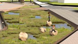 Collection , detention and conveyance features absorb/store stormwater to support dynamic habitat and irrigation.