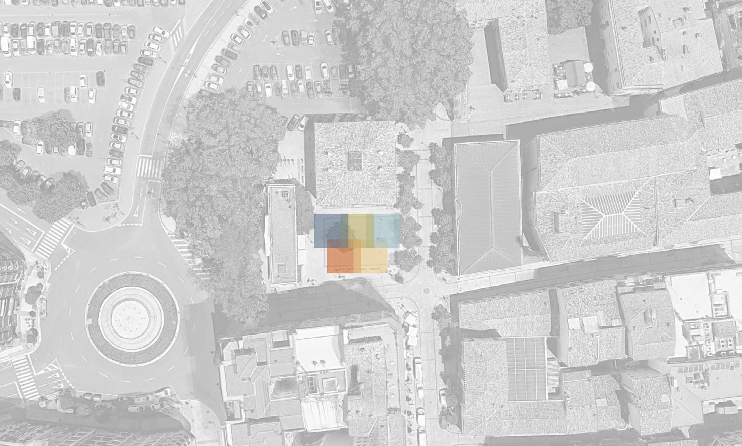 This pavilion would serve as a starting point for the Concentrico International Architecture and Design Festival in Logroño, Spain in the Plaza Escuelas Trevijano. The goal of this pavilion is to cultivate human interaction and play through the use of overlapping, flowing curtains. The design explores the overlap of color through the use of semi-sheer fabrics while inviting visitors to slide curtains to create their own paths through the plaza. The curtains are arranged on the site in a grid following a color gradient of blues, greens, yellows, and oranges. Large opaque white curtains contrast with the sheer colors and meander through the pavilion to create suggested open paths and to provide a semi-private gathering space. The arrangment of the curtains abstracts the gridded layout to encompass three benches as well as a lamp post on the site. Larger quadrants within the grid are left open to provide a hierarchy of spaces and destination points within the maze of curtains. The pavilion is intended to be light and airy, composed of only three materials; fabric panels, thin wooden columns, and steel bars.