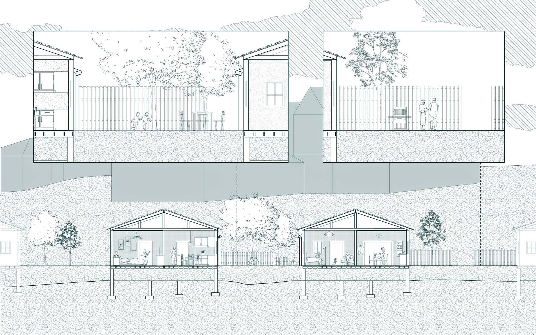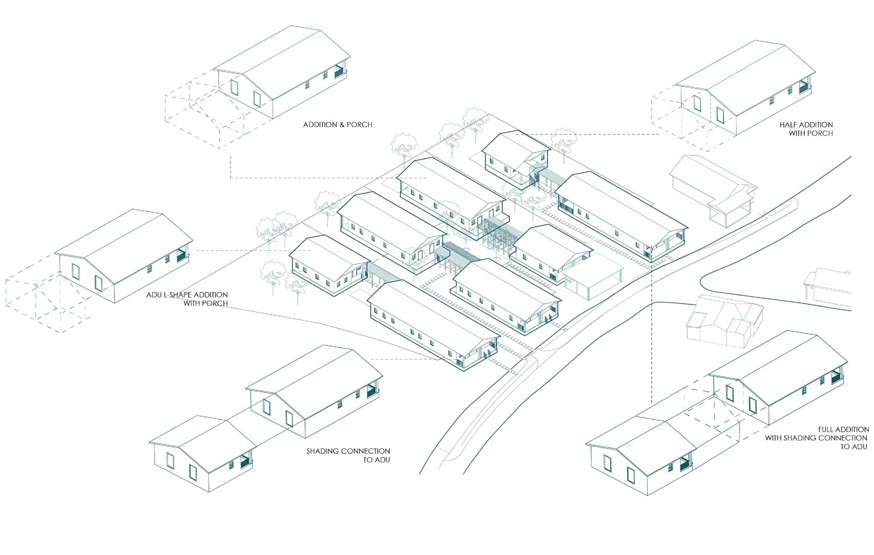Contributions: Research, Concept and Design Development, 3D Printed Model, Site Plans, Vignettes, Addition Strategies, Floor Plans, Sections, Exploded Axon