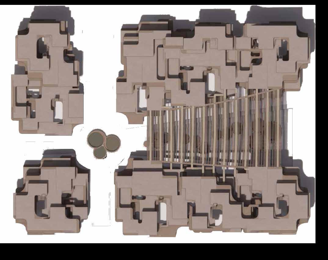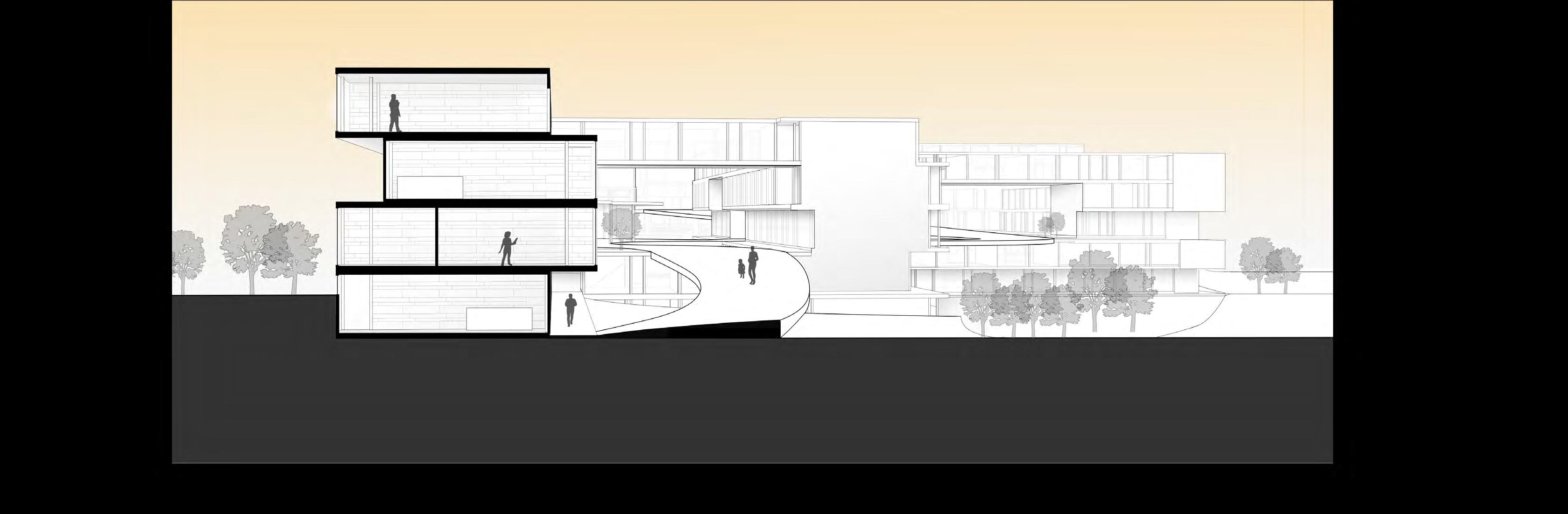 The Path to Green Living can be found in Austin, Texas. The project acts as a gateway between the dense urban center of the city and its surrounding natural landscapes. The structure consists of a curvilinear serpentine path of green space and amenities that intersects a second, orthogonal serpentine form consisting of dwelling units. The curvilinear, floating path allows for expansive views and multiple event spaces, creating an experience out of circulation. The walkway contains three indoor program amenities and aerial views of six unique outdoor spaces. Dwelling units are organized to maximize individual light and views and minimize circulation.