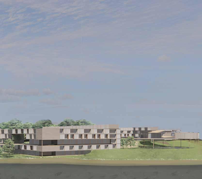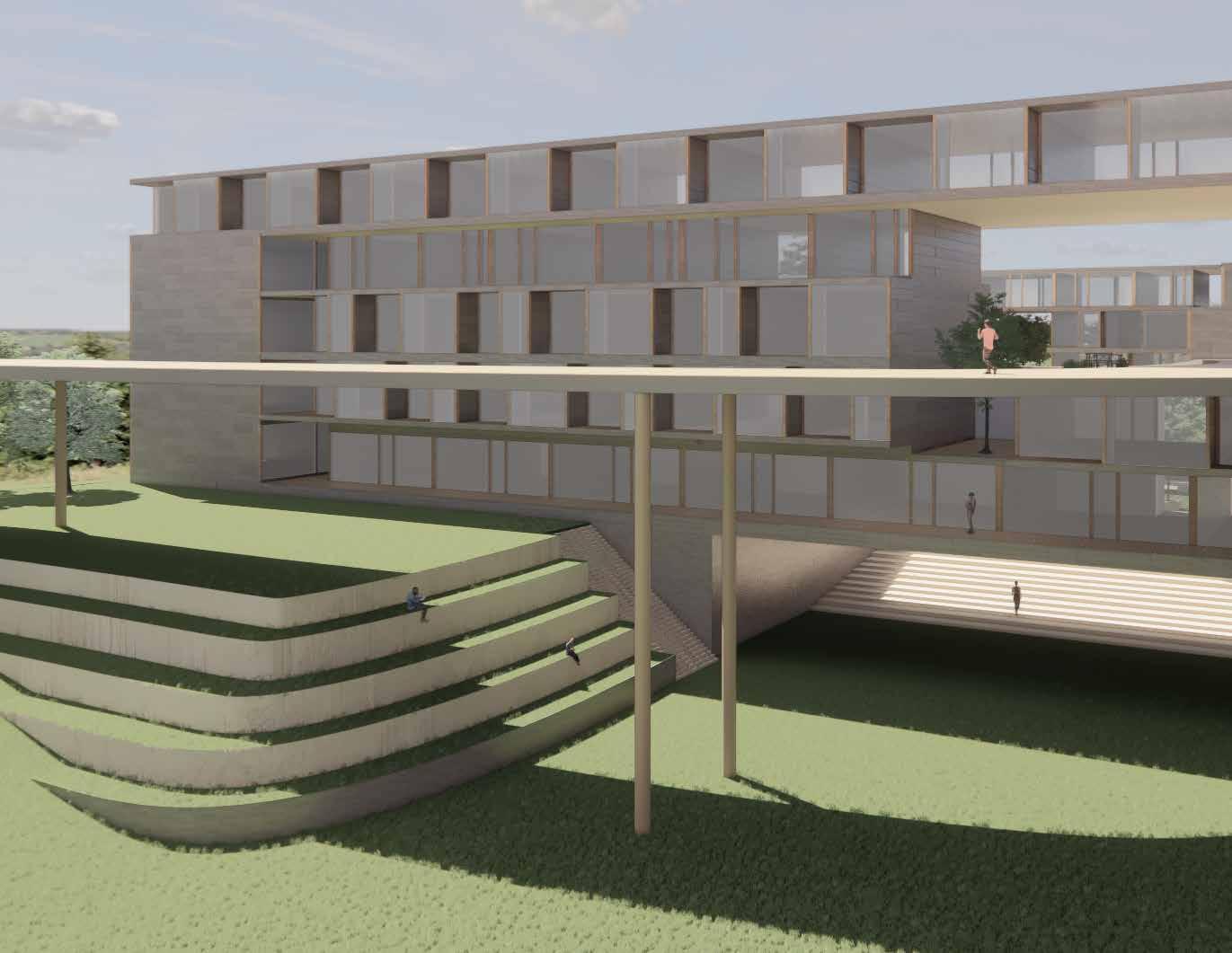 The successful creation of space between the buildings and use of materials inspired the renderings for this project.