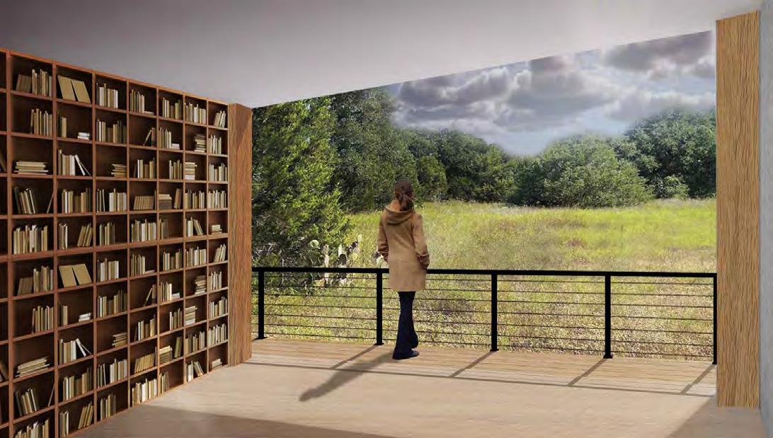 The Bee Cave Nature Center, situated along Little Barton Creek, acts as a reverse funnel system- absorbing newly arrived visitors and encouraging them to disperse throughout the site. The angularity of the buildings allows for curiosity and exploration of the entire nature center, leading the visitor to discover optimal views of all three major ecological zones of the site. The nature center’s circulation directly leads into the site’s future trail system in all directions. Each trail provides a different experience, and the program is organized accordingly. A quick look into the exhibition space can easily result in a journey down the matching “adventurous” trail, leading the visitor past a rocky hillside.