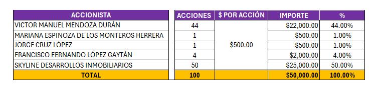 Para el caso de la estructura accionaria de Skyline Desarrollos, esta quedará de la siguiente manera: