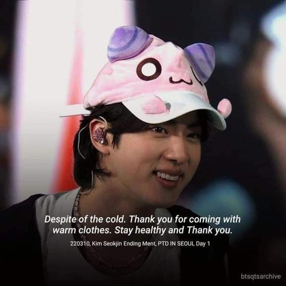 “Jhope mentioned some great things about me, but it's true that I was a stumbling block for the team. We moved as a team of seven, and I should not have been hurt, but I was, and since our team assisted me in this way, I was able to complete the stage successfully. I'd want to take this opportunity to express my gratitude to our staff. I'm not sure when our next concert will be, but we should hear your enthusiastic applause one final time! ARMY makes a racket! Thank you so much, everyone! When we return, we'll see you again!" Jin