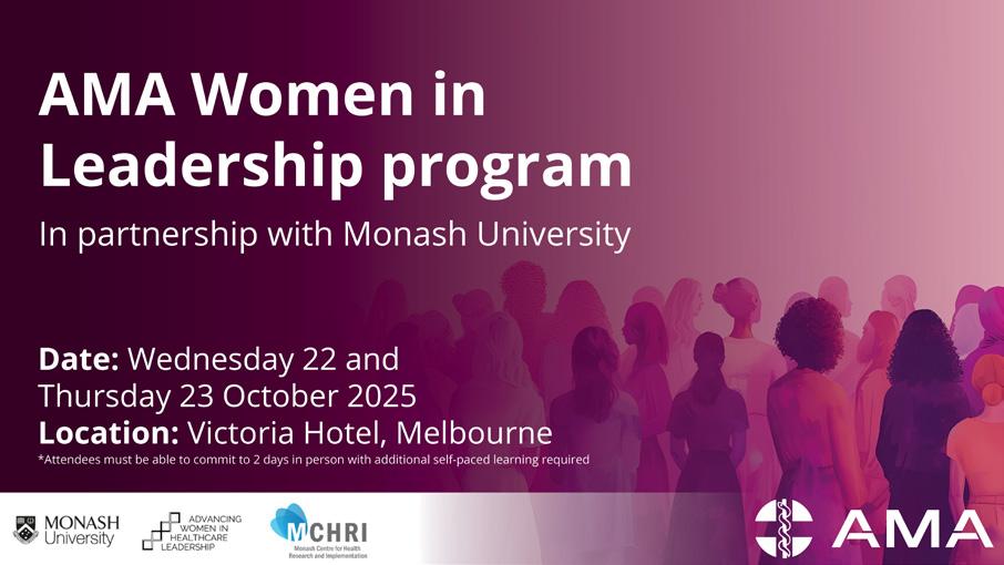 For full details and registration visit: ama.com.au/events/ women-in-leadership