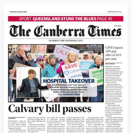 AMA ACT has urged the Government to devise a leadership structure that preserves Calvary’s culture as far as it is possible. The Government has appointed a Transition Team to work with Calvary management toward a smooth handover, including establishing a forum for clinical advice and guidance.
