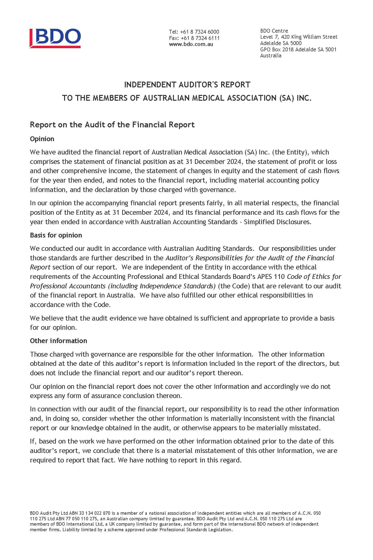 As Chair of the Board, I provide the following update on AMA SA’s financial performance for the 2024 calendar year.