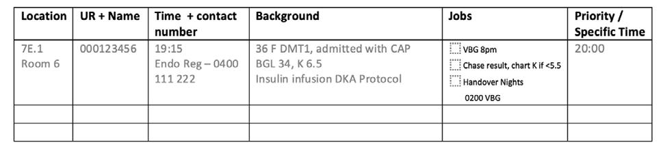 • Don’t feel guilty about handing over tasks –leave a clear plan for what the next doctor should do.