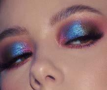 Este look consiste en experimentar con distintos diseños y conceptos que quieras, en este caso sería una galaxia, se usan sombras en tonos azules y morado y con pintura blanca de cara se hacen las estrellas, un deliniado negro y pestañas postizas.