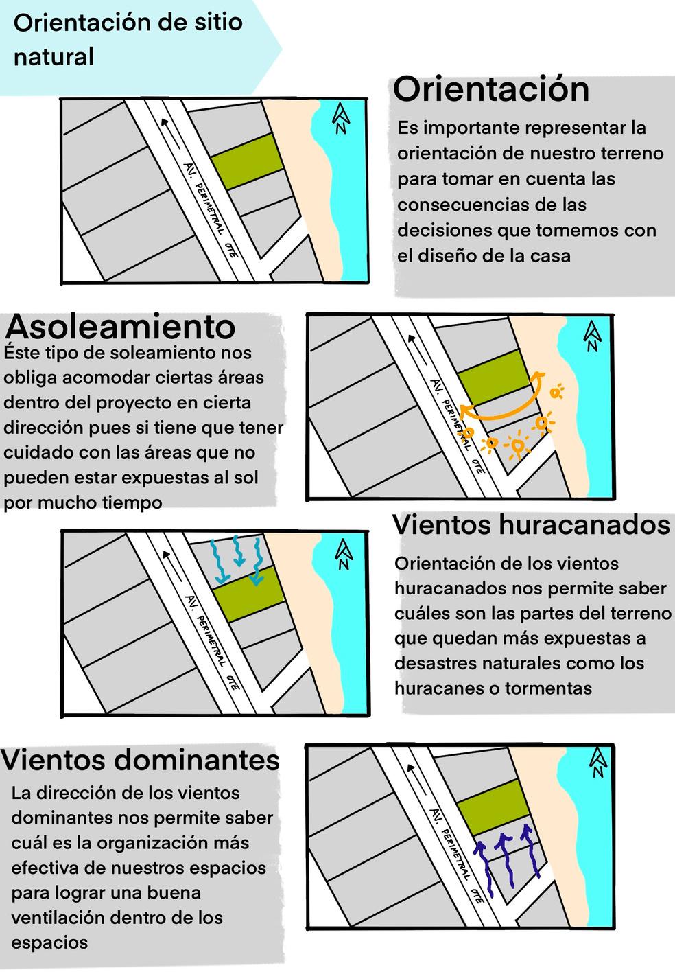 Es importante representar la orientación de nuestro terreno para tomar en cuenta las consecuencias de las decisiones que tomemos con el diseño de la casa.