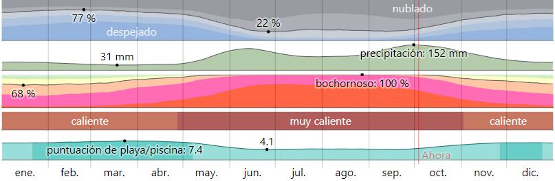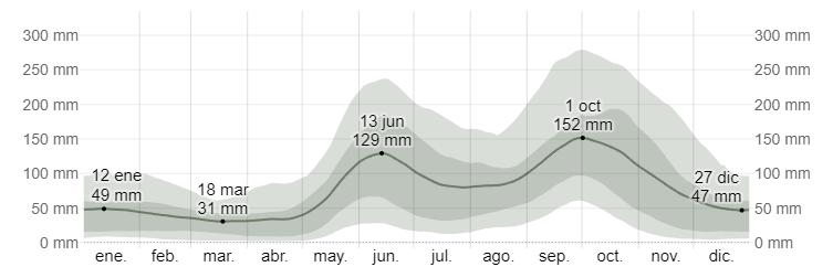 El mes con más lluvia en Isla Mujeres es octubre, con un promedio de 152 milímetros de lluvia. El mes con menos lluvia en Isla Mujeres es marzo, con un promedio de 31 milímetros de lluvia.