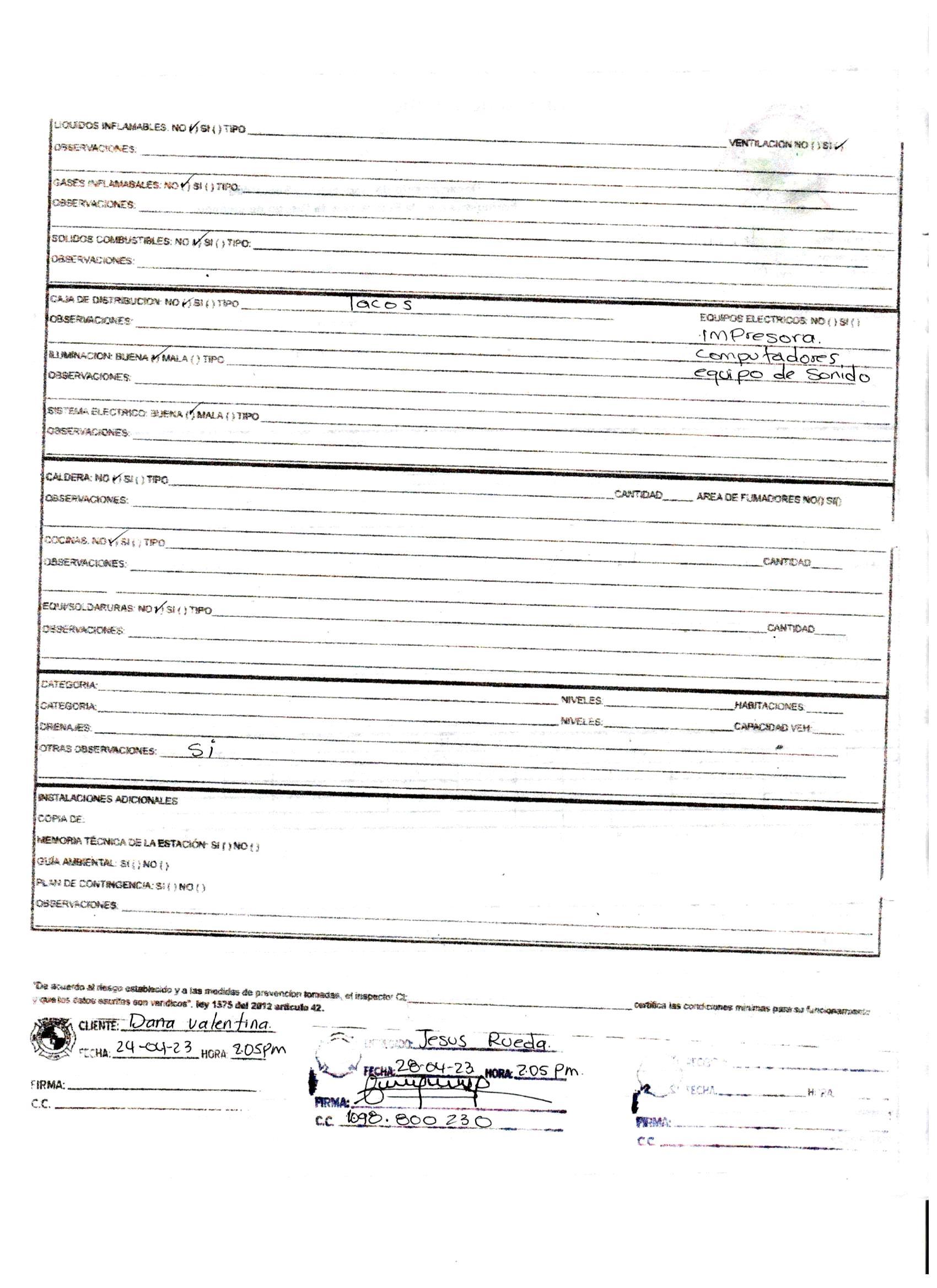 De otra parte, autorizo a la Organización Sayco Acinpro para que verifiquen la información del negocio consignada en este documento, si así lo considera, y en caso de no ser cierto lo aquí denunciado por mí, apruebo la recategorización de la tarifa del negocio con los datos reales plasmados en la visita.
