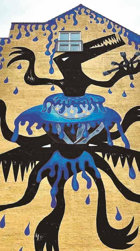 På en strækning af Holmbladsgade ved Støberigården er bygningerne trukket tilbage bag en mur. For at denne strækning ikke skal virke mørk i forhold til resten af Holmbladsgade er murnicherne oplyst med LEDbånd, der giver en markering af muren.