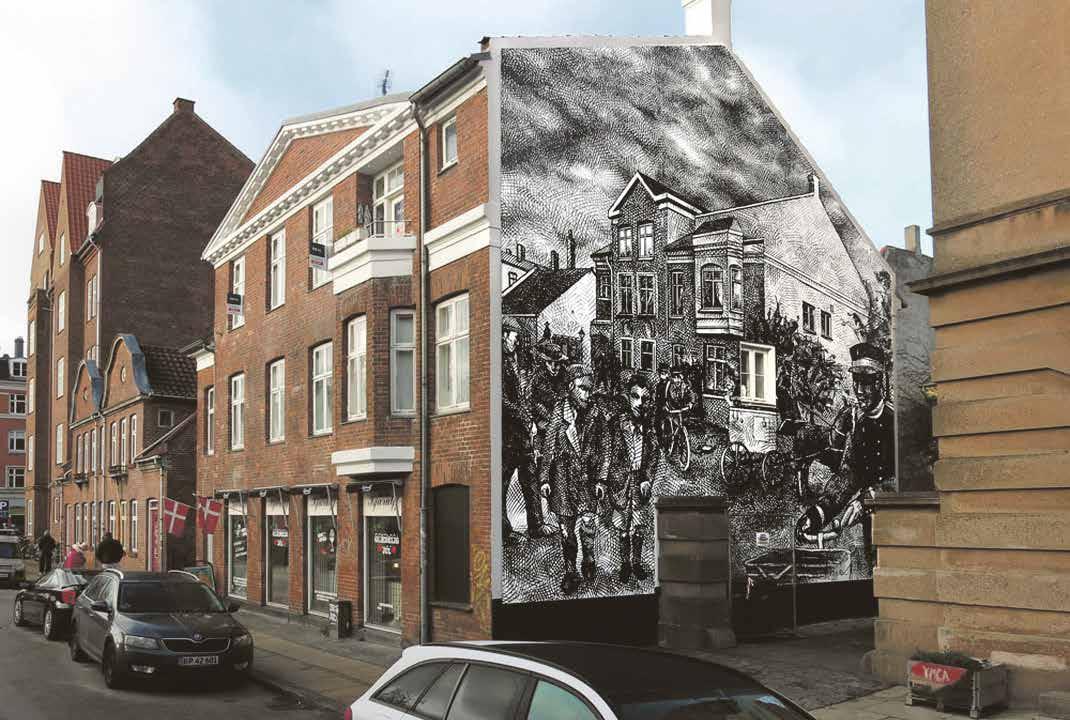 gade og Jemtelandsgade blev opsat en gadestander med en højde på 6,3 m. Gadestanderen udsender et svagt markeringslys og blev udformet som en 1:12.500 model af Holmbladsgade med dens sidegader.