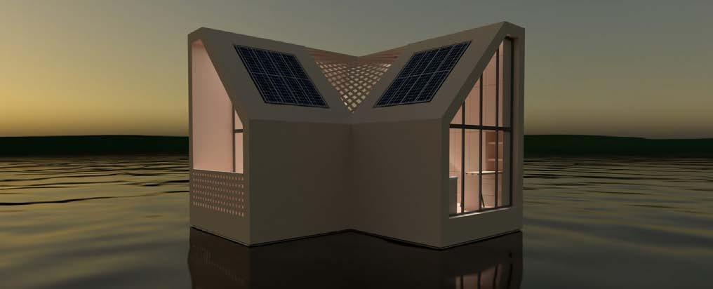 Floating House is situated in Seneca Lake, New York. The unconventional design uses locally sourced wood and easily accessible materials that can be pre-fabricated and rearranged, as well as photovoltaic panels integrated into each ‘living’ module. The house, an exploration in low-impact architecture, can be moved to different sections of the lake or deconstructed and reconstructed on dry land during colder months thanks to its nature as an off-grid dwelling.