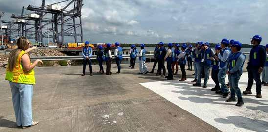 Como parte del enfoque práctico del curso, se realizaron recorridos en instalaciones estratégicas del puerto, lo que permitió a los asistentes conocer de primera mano operaciones reales, infraestructura de alto rendimiento y tecnologías de vanguardia.