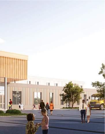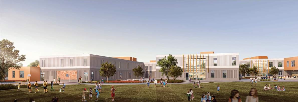 This school is a renovation and addition to an existing K-5 school on an air force base in Tucson, AZ. The addition adds a middle school and a gym and cafeteria building. This school’s focus is on innovation, embracing and celebrating the arts, and flexible learning. Anticipated date of completion: Fall 2024.