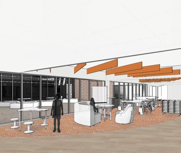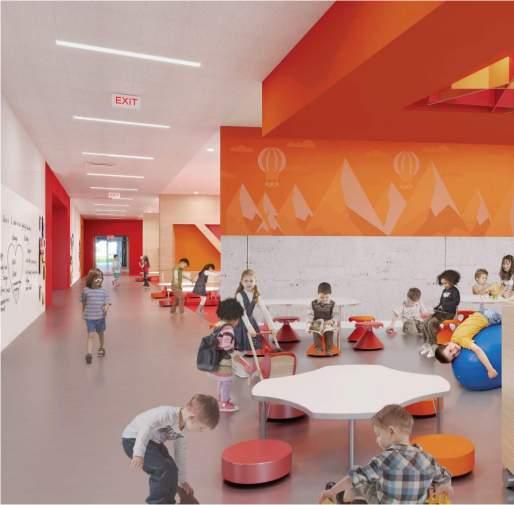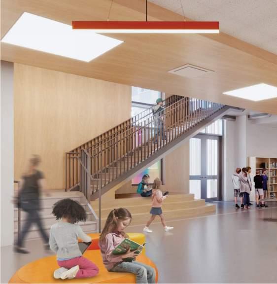 This school was designed to support a sense of wonder and inquiry, with multiple paths for students to explore as they grow. The learning community pods are highly flexible, allowing for inquiry-based learning and gathering.