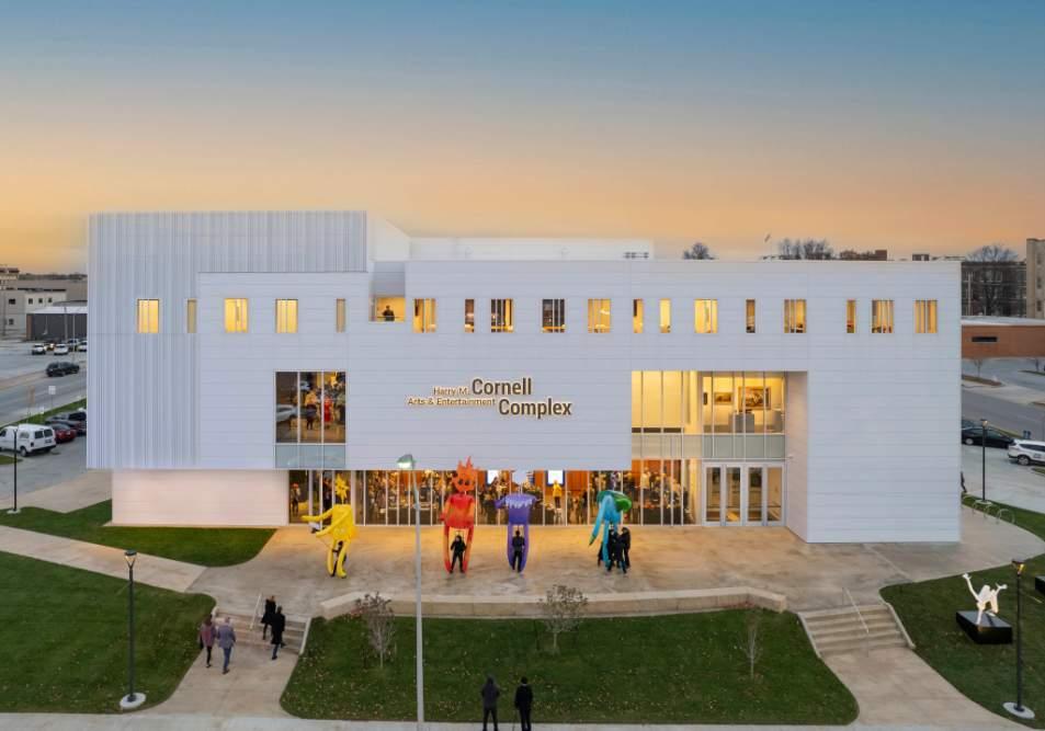 ThiscomplexhonorsandbuildsonthelegacyoftheartsinJoplin, Missouri and the region. This new community building features museum gallery spaces, the central theater, a performance hall, lounge spaces, and a large outdoor amphitheater.