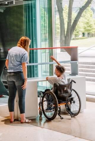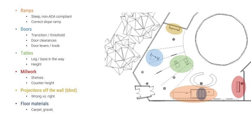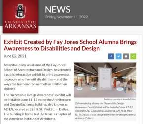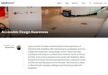 DLR Group, an integrated firm of architects, engineers, planners, and interior designers, sponsors Personal Development Grants to allow its employee-owners to pursue passion projects. In 2021, DLR Group Interior Designer, Amanda Collen, was awarded one of these grants to develop an interactive exhibition related to accessible design. Her research led to the creation of the Accessible Design Awareness Experience, which includes an interactive exhibit, a series of case studies, video interviews, and links to resources about accessible and universal design. The first version of this ADA experience opened in Dallas, TX, at the AIA regional office in the Spring of 2021. Since its introduction, the exhibit has garnered substantial interest and has proven impactful to the community.