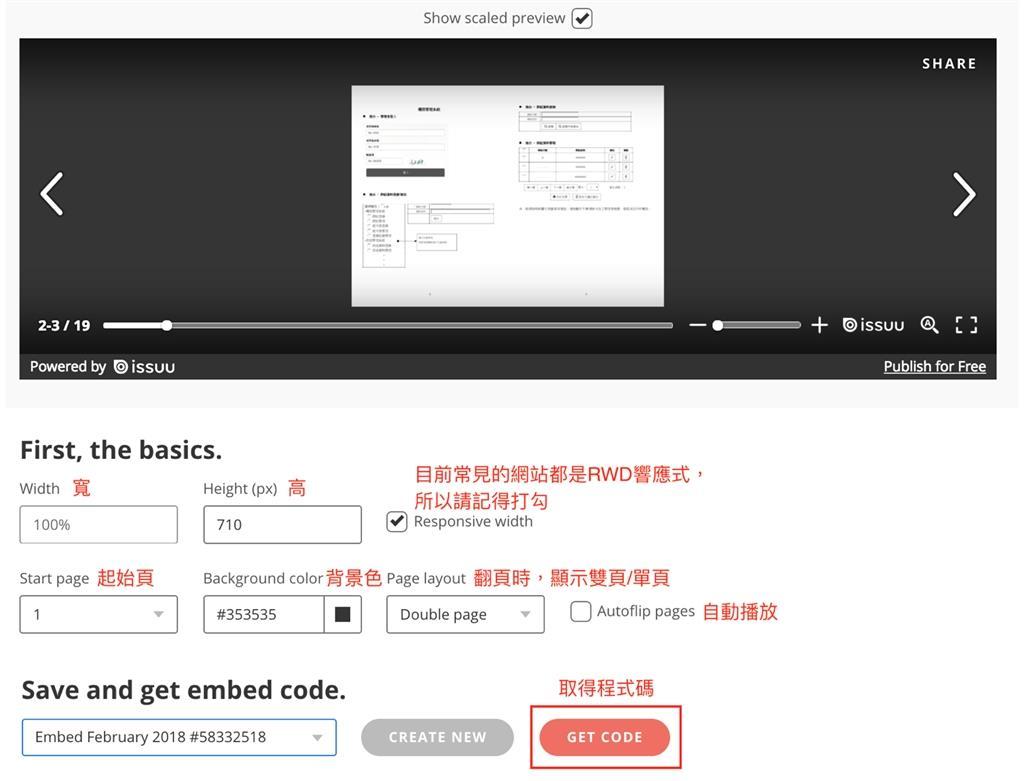 調整電子書大小及設定。目前網站都是 RWD 響應式的設計,記得要在響應式寬度的地方打勾。