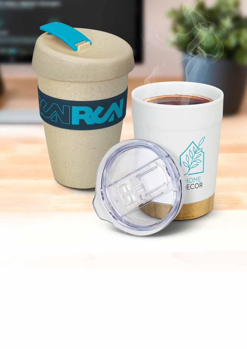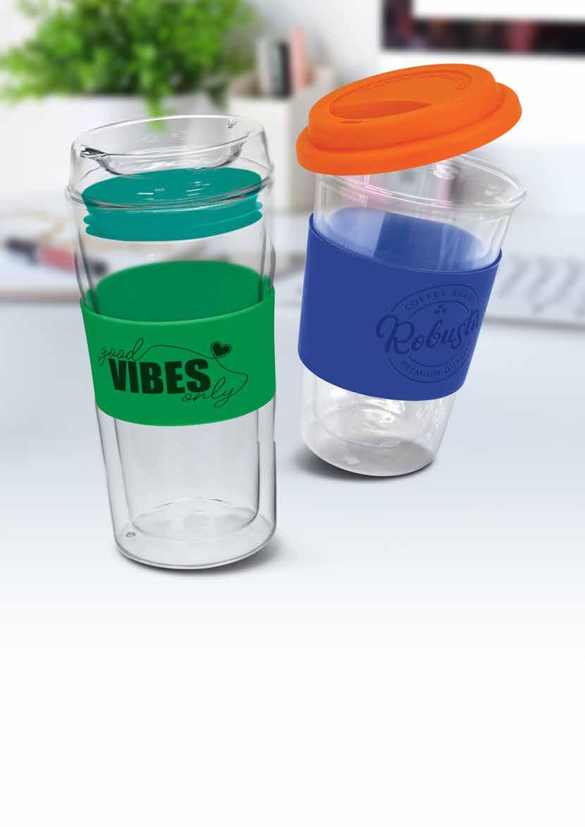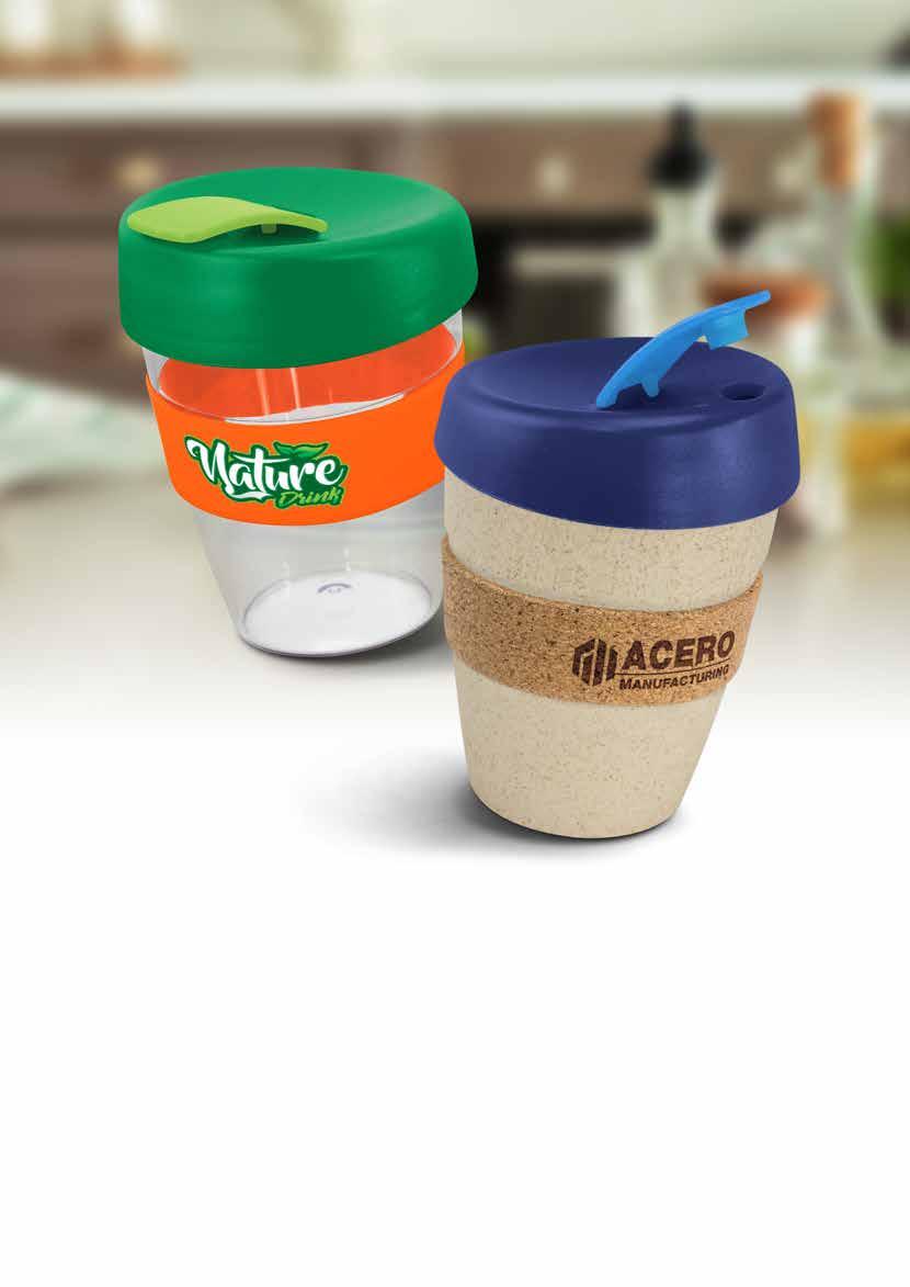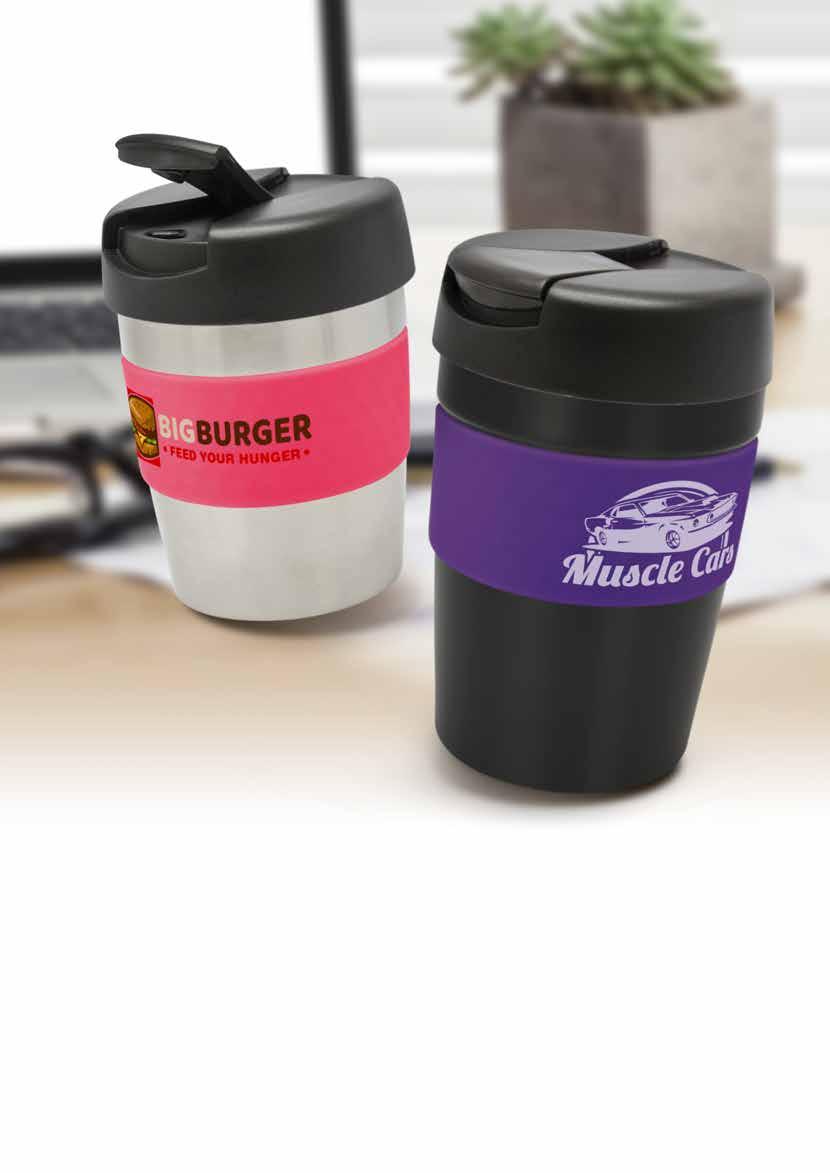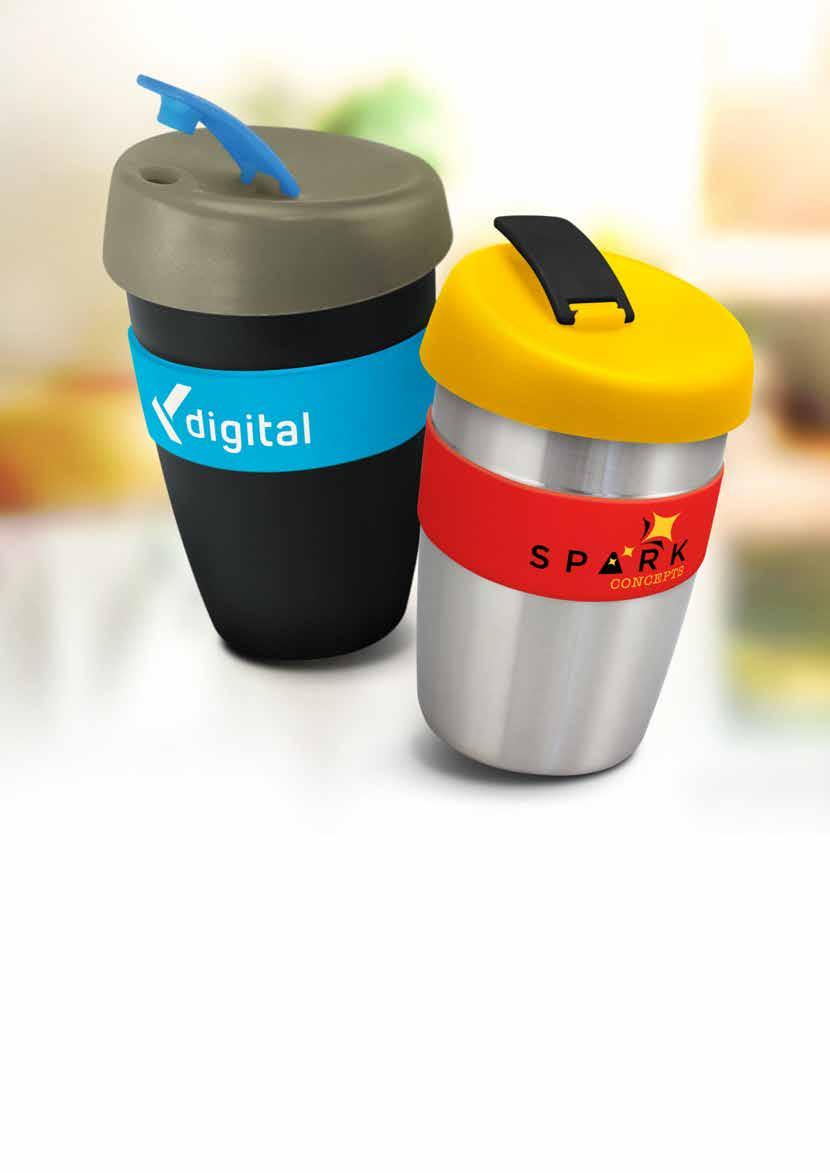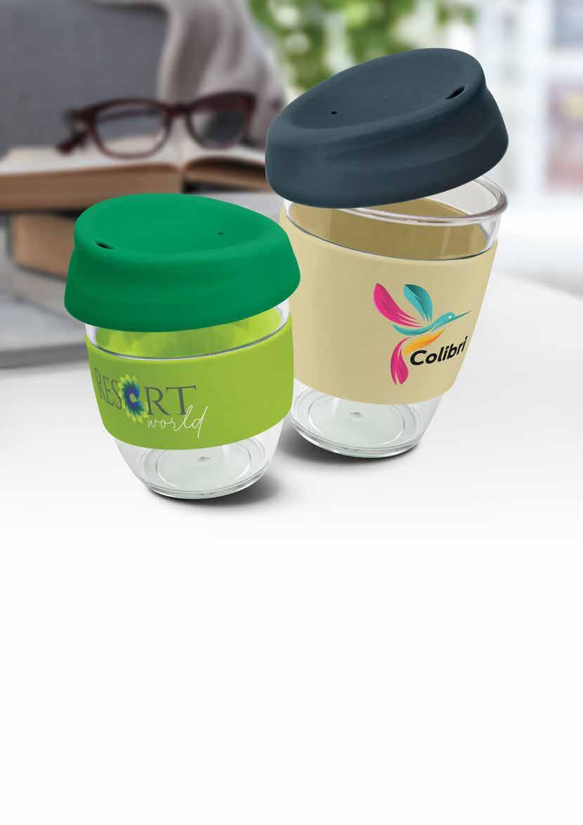 Single wall cups a re an a ff o rd a b l e , l ightwei g ht a n d co m pact c o ffe e c up opt io n A h ea t - re sistant si l icon e or c ork band ensu res the c up is c o m fortabl e to ho l d and p ro v ides a perfe c t br a nd i n g opportunit y