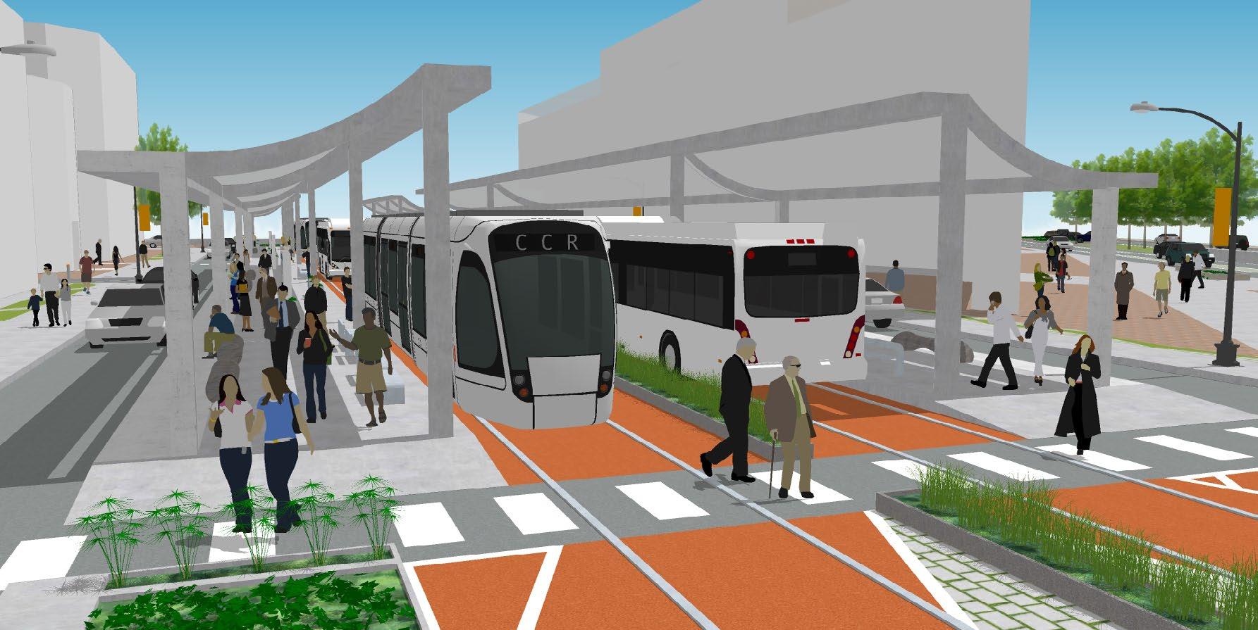 Given the projected demand for multimodal transportation, the plan’s Downtown Mobility Strategy ( right ) proposes protected two-way cycle tracks, Bus Rapid Transit lanes, the creation of the Cincinnati Commuter Rail network, and the construction of a public transit hub—Queen City Station—that serves as a gateway into the Downtown. This project aims to unite people by creating a place that values social responsibility, communal fortitude, and individual worth and integrity.